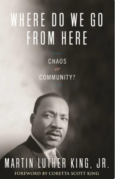 In observance of the Martin Luther King Jr. holiday this year, I picked up his final book, “Where Do We Go From Here: Chaos or Community?” The 1967 book feels prescient, as if King knew it will be his last, and he wanted to pass the baton.